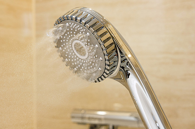 ウルトラファインバブルとマイクロバブルの2つの泡で全身を包み込むシャワーヘッドや、