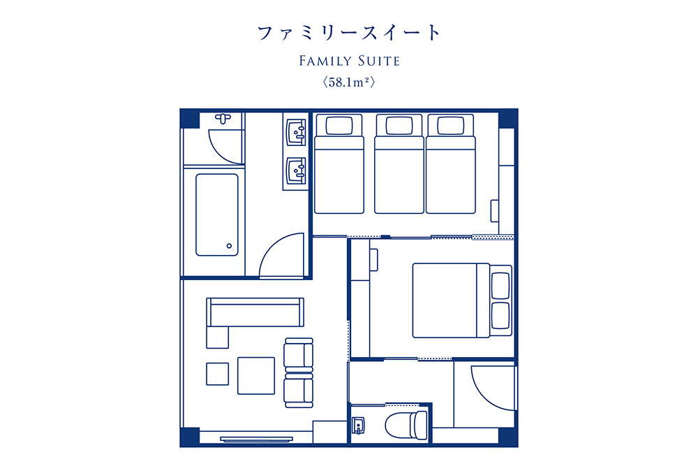 | 面積 | : | 58.1m² | 定員 | : | 1名~4名 |
